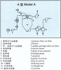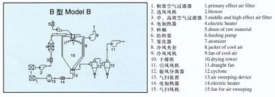 说明:本公司可根据不同的物料特性,不同的加热方式,不同的控制方式,不同的控制要求,不同的产量要求,不同的产品条件,不同的厂房布置要求,不同的清洗要求(CIP)等进行设计,以满足不同客户的要求。本公司备有各种试验机,可供客户试验,以确定物料干燥特性。 |