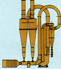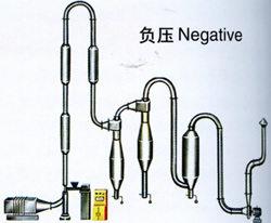 原理:粉状物料在管道中被高温空气分散,随气流运动,使表面积增大,在短时间内完成干燥。根据物料水份要求可采用强化粉碎,多级干燥。